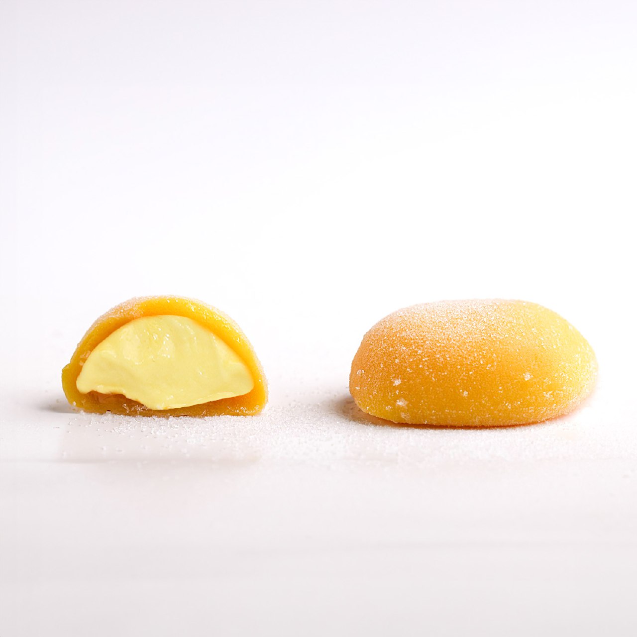 Water, rice flour, sugar, 12% mango pulp, COW BUTTER, 4.7% sweetened condensed milk (80%* whole milk, sugar), skimmed milk powder, tapioca starch, gelatin, emulsifier: mono- and diglycerides fatty acids. , dye: carotene, acidity regulator: sodium citrate, flavoring.