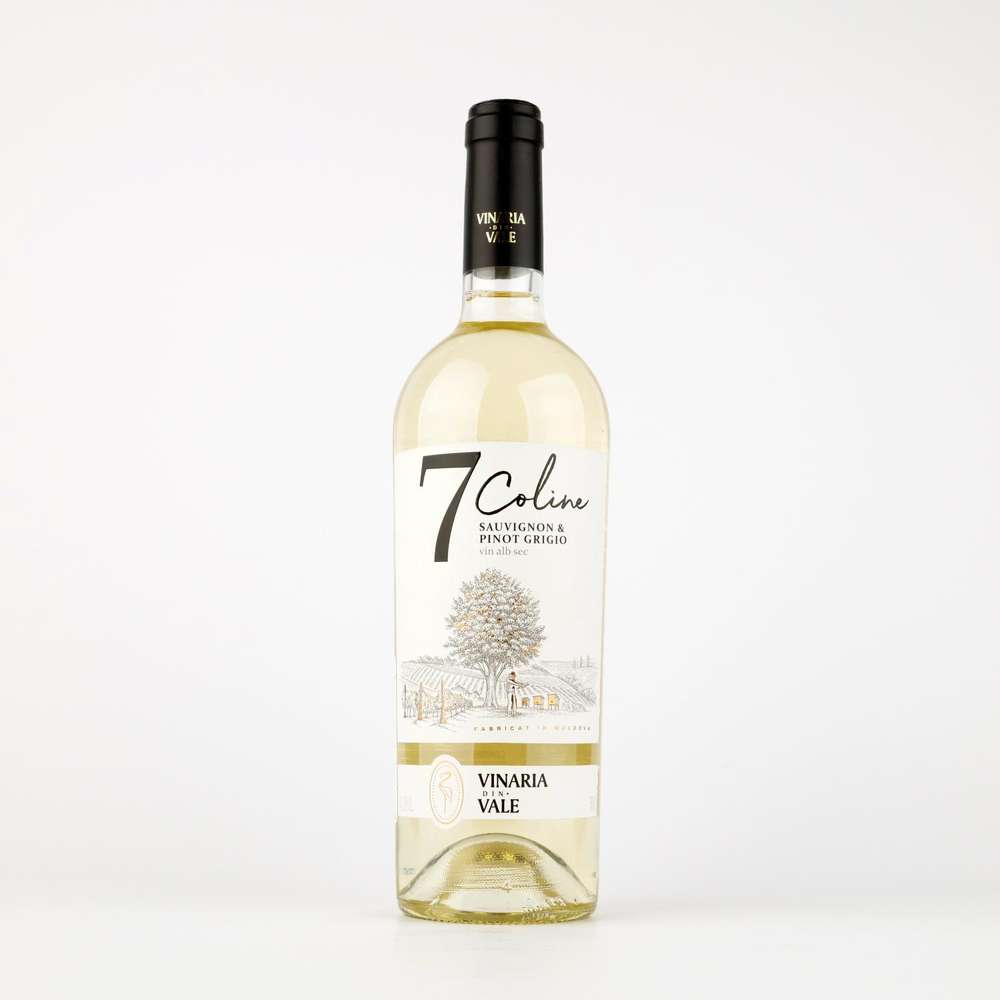 Wine Sauvignon / Pinot Grigio "Vinaria din Vale 7 Coline" is a dry white wine with green reflections. Fresh aroma of cut grass, wild flowers, green apples, citrus fruits. The taste of wine is harmonious and velvety, with well-balanced acidity. Fruity aftertaste with light honey notes. The wine is made from two grape varieties grown in the hills in the south of Moldova. It goes well with fish, oysters, escargot, shrimps, salmon tartare, risotto with porcini mushrooms and vegetables. Discover the unique taste of wine "Vinaria din Vale 7 Coline" Sauvignon/Pinot Grigio.