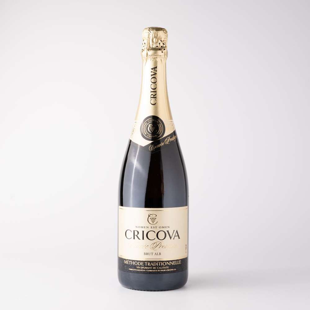 The Cuvée Prestige Cricova sparkling wine is a blend of Chardonnay and Pinot Noir. It is an amazingly tasting straw-yellow drink that matures for at least three years according to the Champenoise method. Balanced harmonious bouquet opens up with creamy and floral notes. Treat yourself to an exclusive sparkling wine with a refined taste and order The Cuvée Prestige Cricova sparkling wine in our online store.